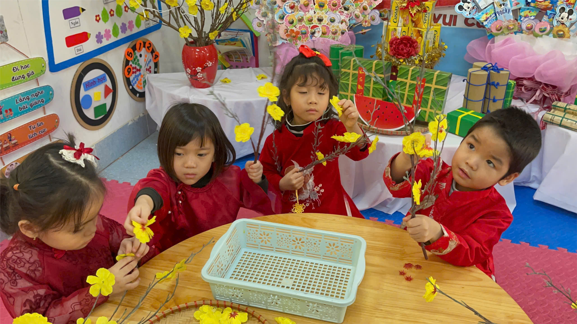 Hoạt động không chỉ giúp các con rèn luyện sự khéo léo, phát triển được vận động tinh, tính sáng tạo... qua đó còn giúp các con hiểu thêm về ý nghĩa của ngày Tết, nuôi dưỡng tình yêu với văn hóa dân tộc.