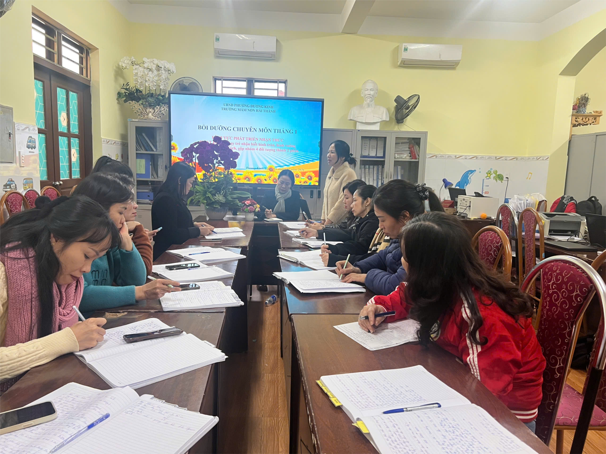 Thông qua dự giờ và trao đổi chuyên môn, giáo viên đã cùng phân tích phương pháp tổ chức hoạt động, cách đặt câu hỏi gợi mở, tạo cơ hội cho trẻ trải nghiệm, thao tác trực tiếp và phát huy tính tích cực. Buổi SHCM giúp thống nhất quy trình tổ chức hoạt động, nâng cao hiệu quả giảng dạy và phát triển năng lực nhận thức cho trẻ.