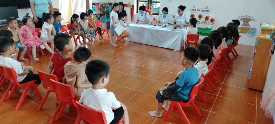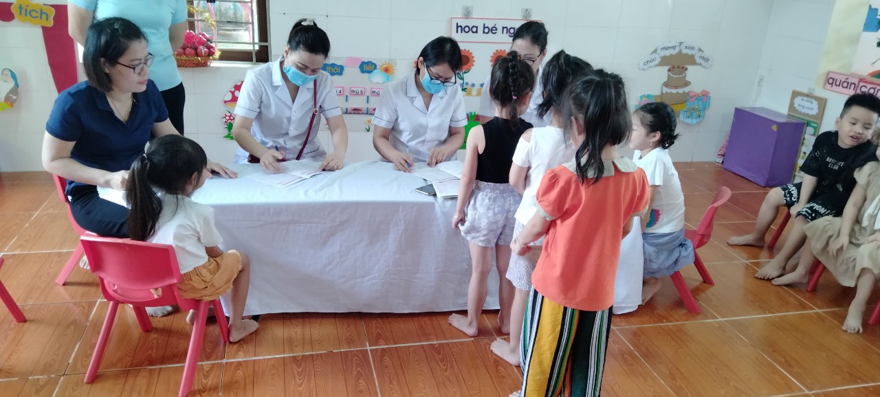 Kết quả kiểm tra sức khoẻ của trẻ đã được cán bộ y tế phường và nhân viên y tế nhà trường cùng giáo viên phụ trách lớp ghi chép cụ thể trong phiếu theo dõi sức khỏe, chấm biểu đồ phân loại sức khỏe trẻ và được giáo viên các lớp thông báo đến phụ huynh, đặc biệt là một số trẻ mắc bệnh về răng qua đó phụ huynh cùng phối hợp có biện pháp điều trị kịp thời cho trẻ.